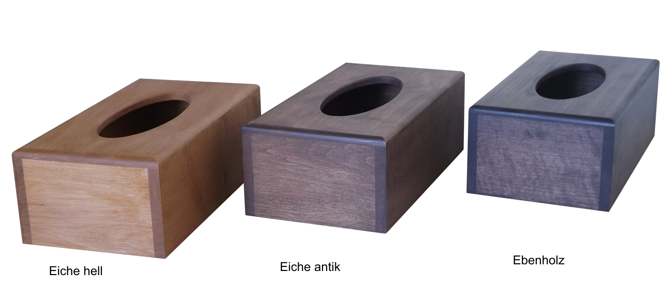 The box serves as a decorative way of storing tissues that many produces offer in boxes of size 11x23x7cm. One can easily put the box with the tissues inside. The body and the lid are made of solid alder wood, the edges of the lid and the opening are well rounded. Surface treatment with hard oil in shade antique oak.