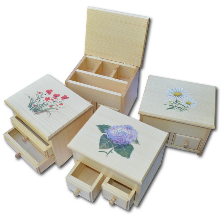 This originally common jewellery box from our supply was customised by an artist, in this case by painting daisies on it. As a finish, hard wax oil was applied on it to protect it from air humidity and dirt. It also stresses the painting as well as the unique wood texture. This oil is certified for use for children furniture and toys and therefore guarantees health safety. IT IS A UNIQUE PIECE. Currently we are preparing further jewellery boxes with flowers.