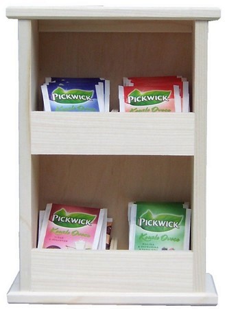 This standing tea shelf for 4 sorts of tea is made of spruce wood combined with birch plywood (back part). Delivery without decoration and surface treatment, sanded smooth.